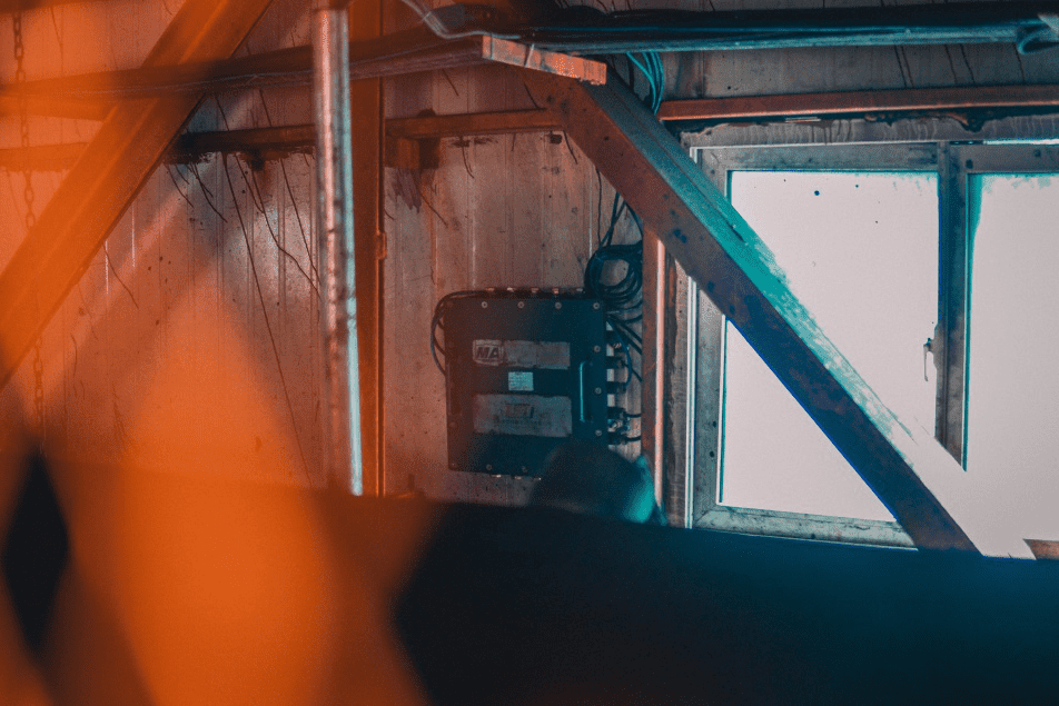 顺着延绵不断的阶梯到达了榴莲APP在线观看TST输送带钢绳芯探伤(机站)系统的前置设备安装地方。